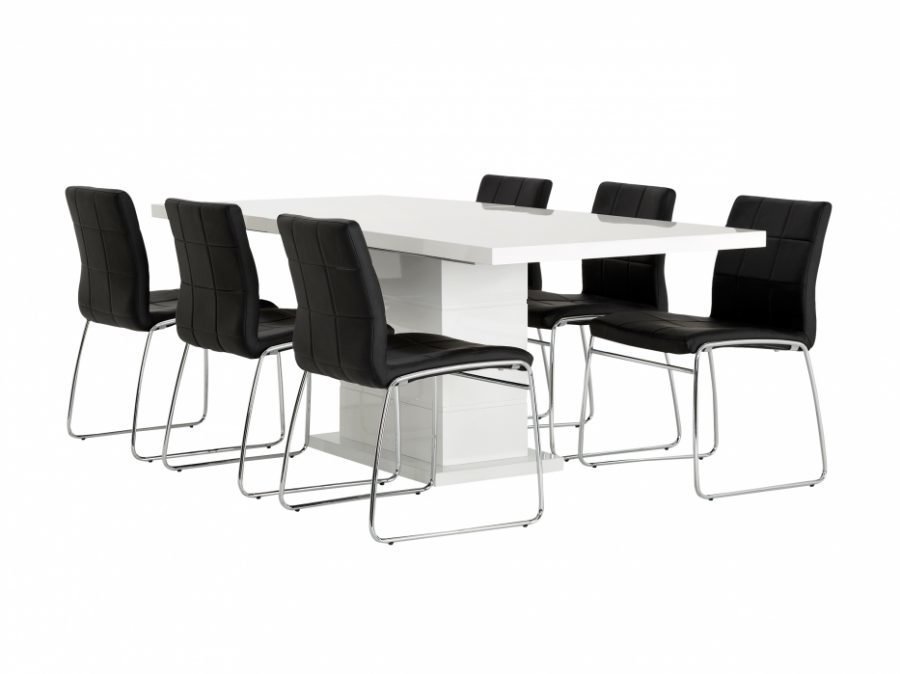Kulmbach Pöytä 160 Valkoinen + 6 Viskan Tuolia Musta