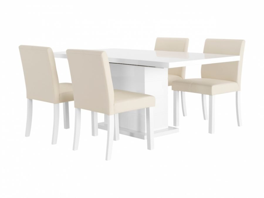 Kulmbach Pöytä 180 Valkoinen + 4 OXELÖSund Tuolia Beige