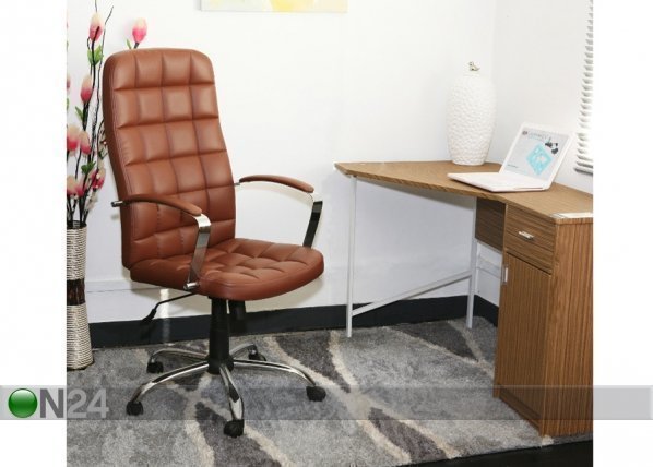 Mukava konttorituoli, säädettävä korkeus ja keinumekanismi – verhoiltu ruskealla keinonahalla – istuinkorkeus on… Lue lisää »