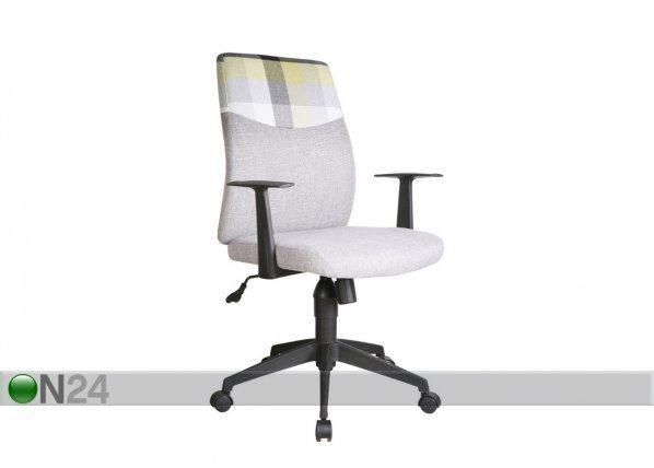 Mukava konttorituoli, säädettävä korkeus ja keinumekanismi – verhoiltu harmaalla kankaalla, niskatuki kuviollisella kankaalla… Lue lisää »