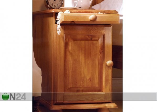 Männystä valmistettu yöpöytä, petsi- ja lakkaviimeistely – laatikot liukuvat muovikiskoilla – oven takana… Lue lisää »