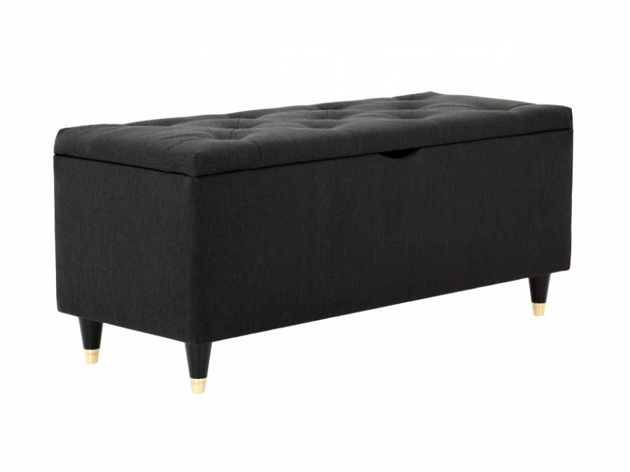 Tyylikäs sängynpäätyarkku helposti sovitettavaa mustaa kangasta syvänapitetulla kannella. Tänne voi laittaa päiväpeitteen ja koristetyynyt yöksi… Lue lisää »
