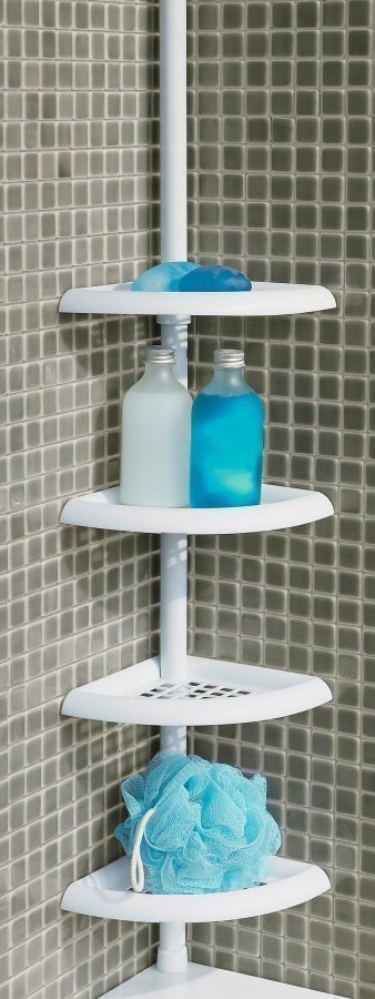 Säädettävä tanko ja neljä siirrettävää hyllyä. Lisää säilytystilaa lattiasta kattoon tai kylpyammeen reunasta kattoon. Sopii myös suihkukoppiin. Enimmäiskorkeus 269 cm. Hyllyn syvyys 19 cm. Tangon halkaisija 2,5 cm.