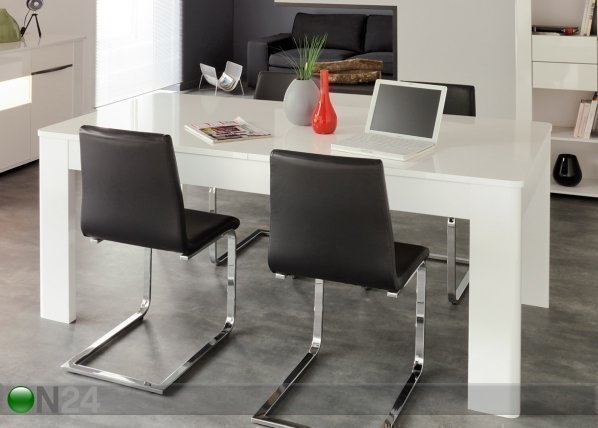 Jatkettava ruokapöytä on valmistettu laadukkaasta Euroopan terveysvaatimuksia vastaavasta kalustelevystä – viimeistelty valkoisella kiiltävällä… Lue lisää »