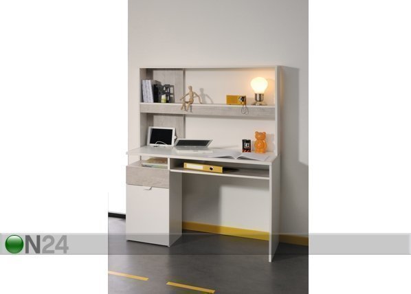 Kirjoituspöytä ja hyllystö on valmistettu Euroopan terveysvaatimuksia vastaavasta kalustelevystä – valkoinen ja harmaa… Lue lisää »
