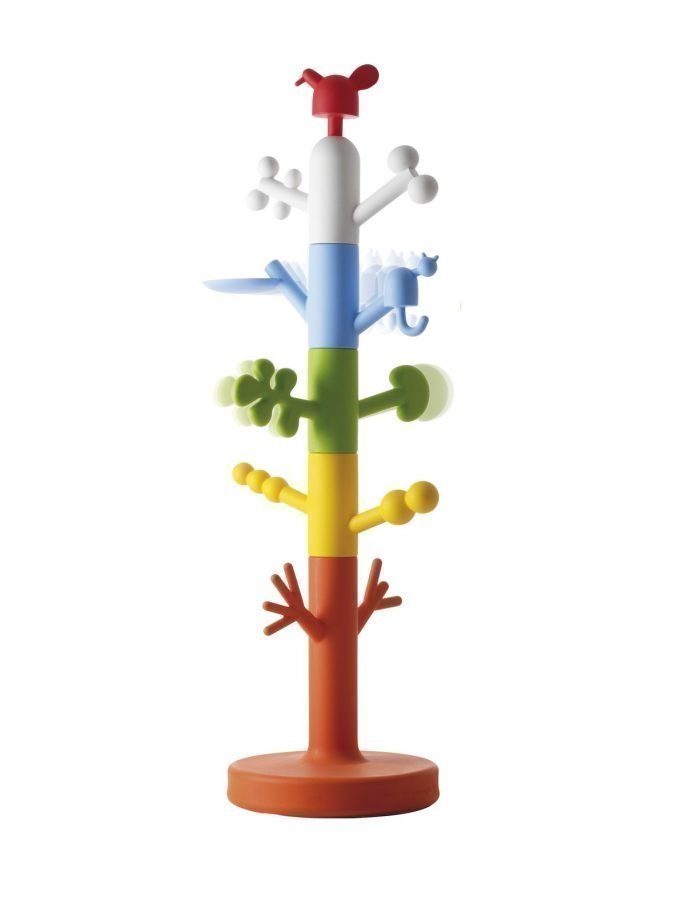 Oiva Toikan suunnittelema leikkisä lattianaulakko on paitsi hauska sisustuselementti myös kestävä ja käytännöllinen käyttötavara. Naulakossa on teräsrunko, joka on päällystetty polyetyleenimuovilla. Halkaisija on 55 cm ja korkeus 189 cm.