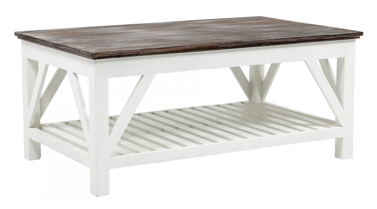 Maison-sohvapöydän pöytätaso on petsattu harmaaksi. Alla valkoinen alataso. Valkoista mangopuuta. Ostoksille!