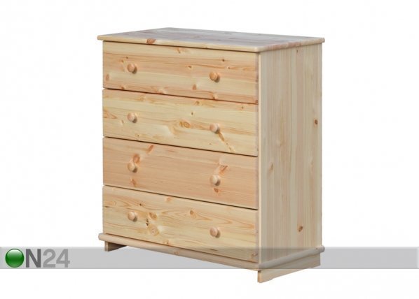 Männystä valmistetussa lipastossa on neljä metallikiskoilla liukuvaa laatikkoa – puunupit – vanilja /… Lue lisää »