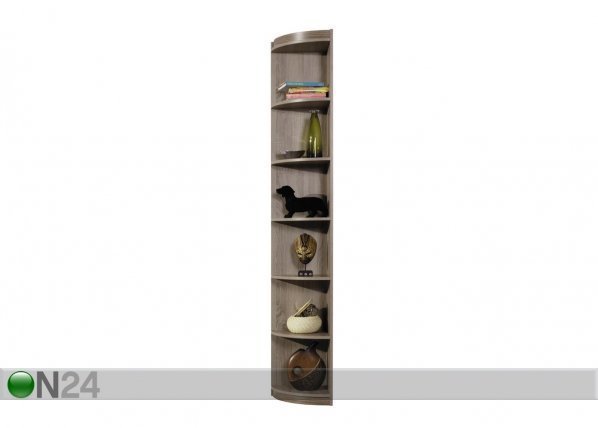 Laminoidusta kalustelevystä valmistetussa nurkkahyllystössä on viisi hyllyä – viimeistely: tryffeli… Lue lisää »
