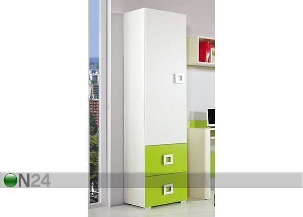 Kaappi on valmistettu kalustelevystä – kaapissa on yksi ovi ja kaksi laatikkoa -… Lue lisää »