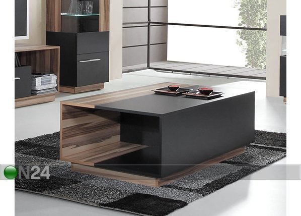 Sohvapöytä on valmistettu kalustelevystä – pöytä on molemmalta päätypuolelta avoin – viimeistely: musta/baltimore… Lue lisää »