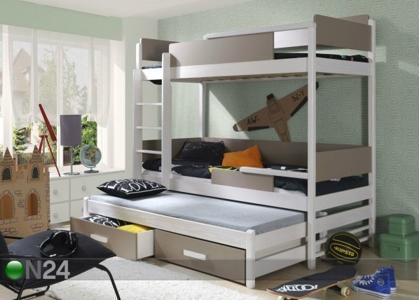 Sarjaan sisältyy kerrossänky, varasänky, sängynpohjat, kaksi vuodevaatelaatikkoa, kaksi vaahtomuovipatjaa 80x181x6 cm ja yksi… Lue lisää »