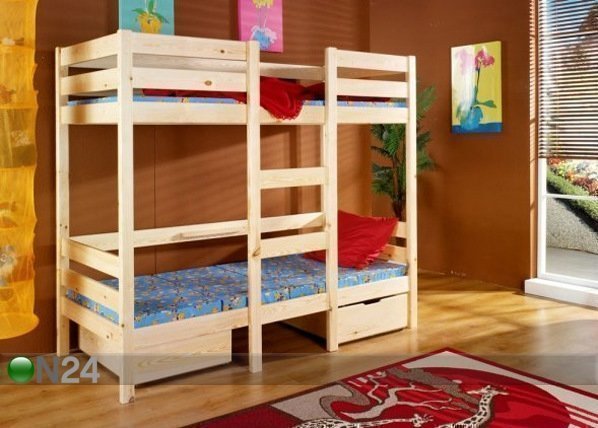 Sarjaan sisältyy kerrossänky, sängyn pohjat, kaksi vuodevaatelaatikkoa ja kaksi vaahtomuovipatjaa 80x180x6 cm mitoissa… Lue lisää »