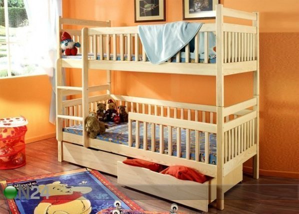 Sarjaan sisältyy kerrossänky, sängynpohjat, kaksi vuodevaatelaatikkoa ja kaksi vaahtomuovipatjaa 80x180x6 cm mitoissa -… Lue lisää »
