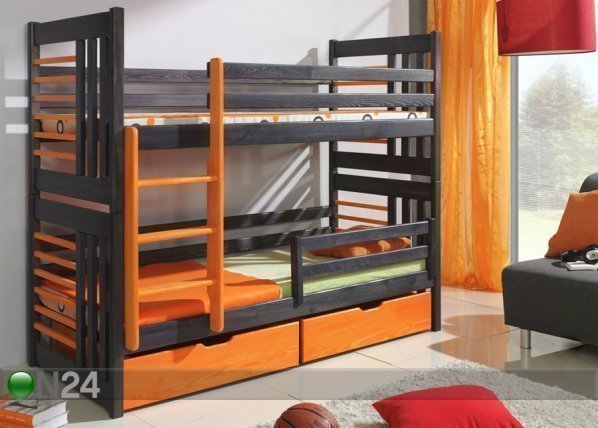 Sarjaan sisältyy kerrossänky, sängynpohjat, kaksi vuodevaatelaatikkoa ja kaksi vaahtomuovipatjaa 80x180x6 cm mitoissa -… Lue lisää »
