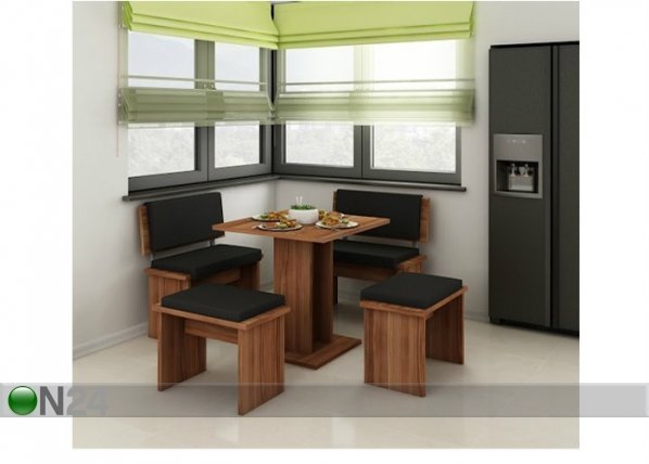 Ryhmään sisältyy ruokapöytä, kaksi tuolia ja kaksi jakkaraa – valmistettu laminoidusta kalustelevystä -… Lue lisää »