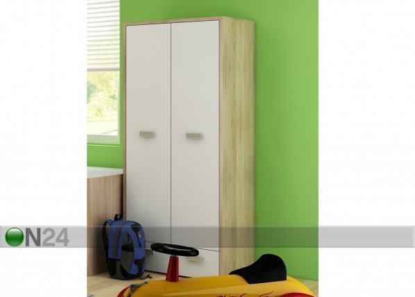 Vaatekaappi on valmistettu melamiinipinnoitetusta kalustelevystä – ovien takana on vaatetanko ja hylly -… Lue lisää »