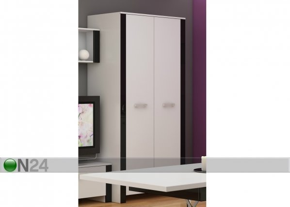 Vaatekaappi on valmistettu laminoidusta kalustelevystä – vasemmanpuoleisen oven takana on kaksi vaatetankoa -… Lue lisää »