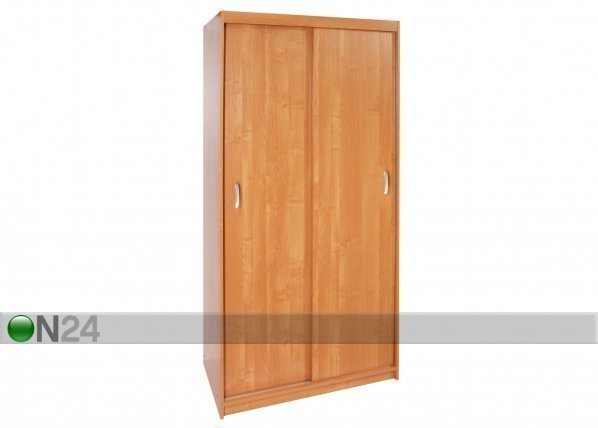 Liukuovinen vaatekaappi on valmistettu laminoidusta kalustelevystä – ovien takana on vaatetanko ja hylly… Lue lisää »