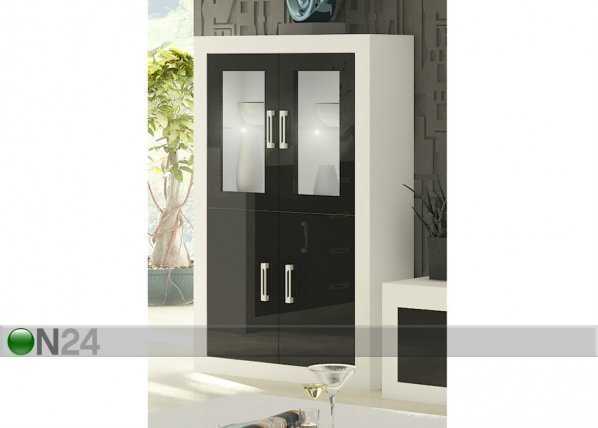 Vitriinikaappi on valmistettu laminoidusta kalustelevystä – ovien takana on yksi lasihylly ja kaksi… Lue lisää »