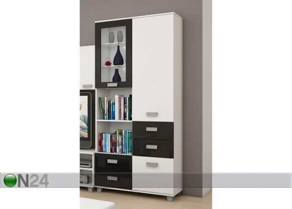 Vitriinikaappi/hyllystö on valmistettu laminoidusta kalustelevystä – laatikot liukuvat metallikiskoilla – lasioven takana on… Lue lisää »