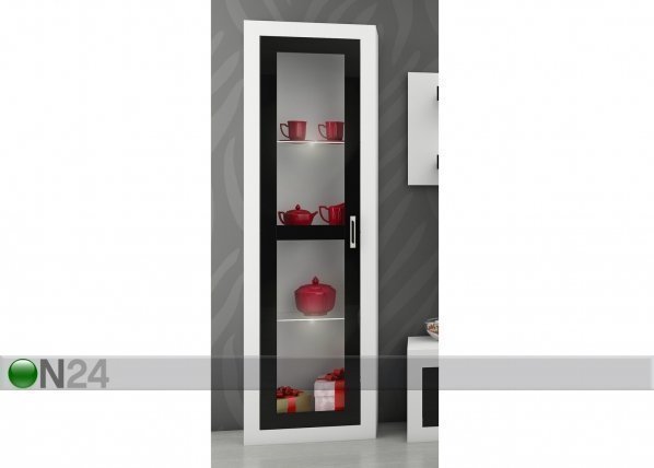 Vitriinikaappi on valmistettu laminoidusta kalustelevystä ja lasista – oven takana on kaksi lasihyllyä… Lue lisää »