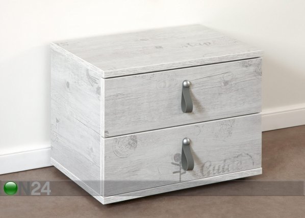 Melamiinipinnoitetusta kalustelevystä valmistetussa yöpöydässä on kaksi laatikkoa – laatikot liukuvat metallikiskoilla – vetimet… Lue lisää »