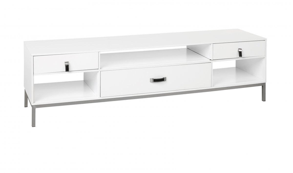 Tyylikkäässä Milano-tv-tasossa on metallijalat. Vetimet ovat mustaa nahkaa. Valkoinen. Ostoksille!