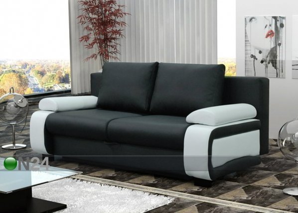 Vuodesohvassa on isot selkänojatyynyt – runko on valmistettu puusta ja lastulevystä – istuinosassa… Lue lisää »