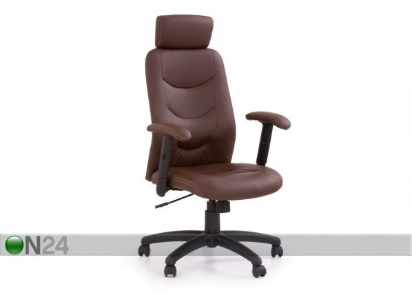 Työtuoli on verhoiltu ruskealla keinonahalla – istuinkorkeus säädettävissä kaasupumppumekanismilla – käsinojat ja jalkaristi… Lue lisää »