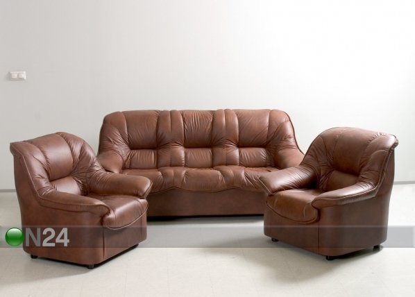 Klassisen tyylikäs nahkasohvaryhmä sopii niin kotiin kuin konttoriin – sohva on valmistettu täyspuusta… Lue lisää »