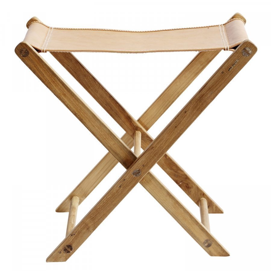 Memphis jakkara, Muubs. Miellyttävä, kokoontaitettava jakkara. Valmistettu yllellisestä tiikki-puusta nahkaistuimella. Käytännöllinen sekä hyvännäköinen!
