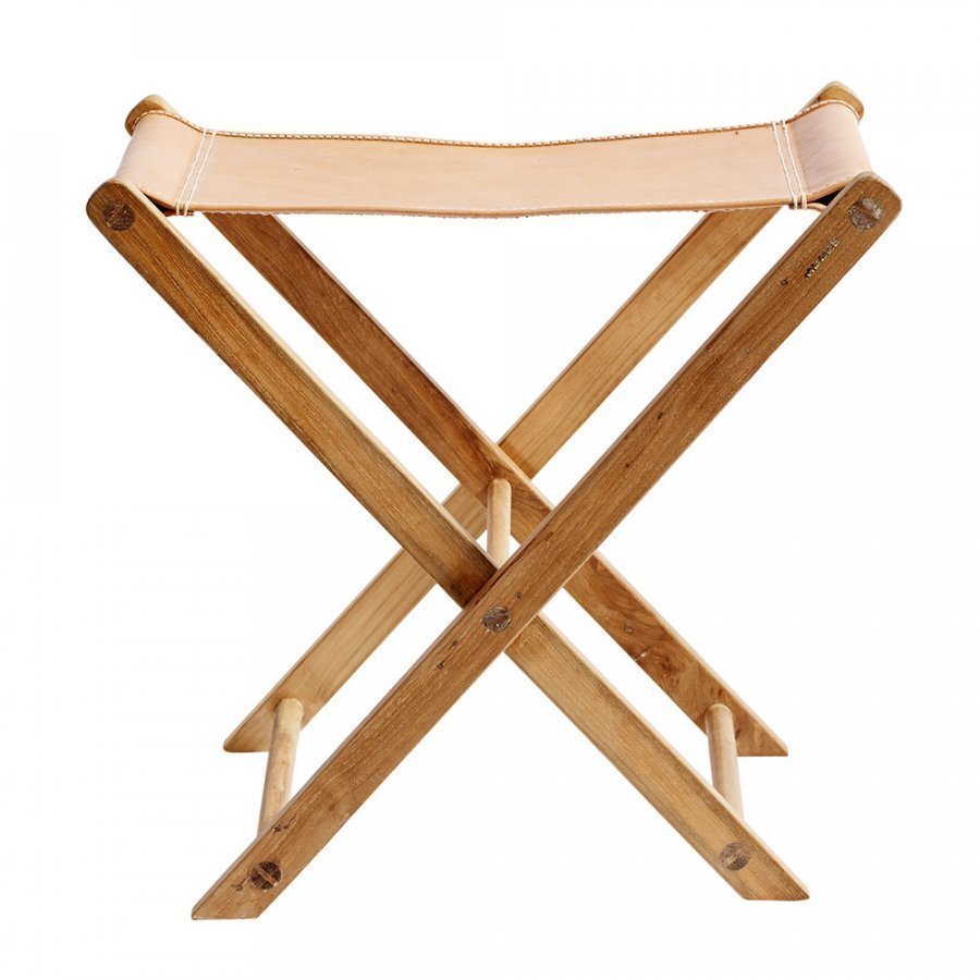 Memphis jakkara merkiltä Muubs. Ihastuttava kokoontaitettava jakkara, joka on erittäin kätevä kun tarvitset lisää istumapaikkoja. Valmistettu tiikistä ja nahasta.
