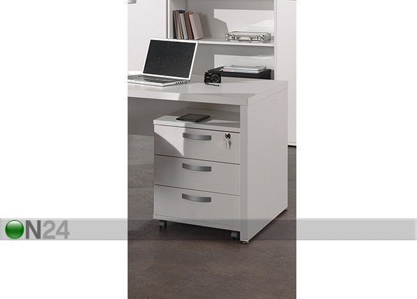 Laadukkaasta kalustelevystä valmistettu laatikosto on varustettu pyörillä – kolme metallikiskoilla liukuvaa laatikkoa -… Lue lisää »