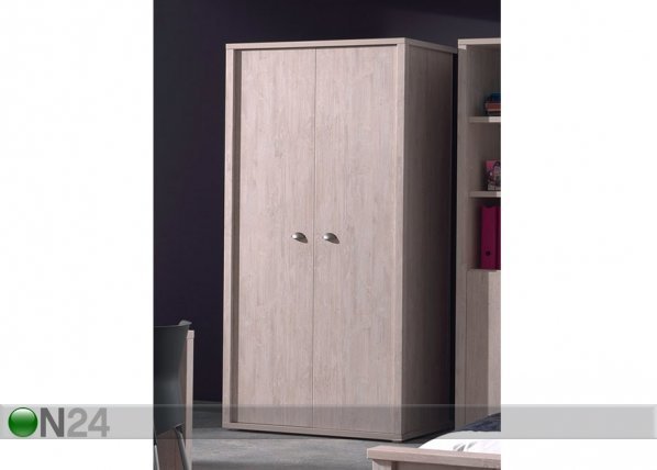 Vaatekaappi on valmistettu kalustelevystä – viimeistely: valkoinen mänty – kahden oven takana on… Lue lisää »