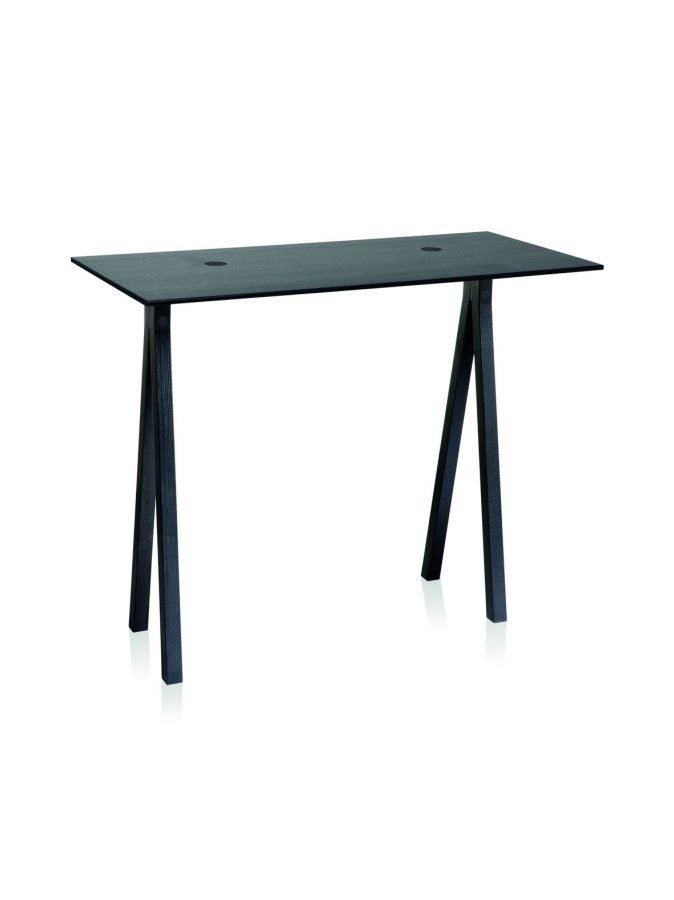 Minimalistisen tyylikkääseen pöytään hauskan yksityiskohdan luovat kaksi pistettä. Materiaali on puuta ja metallia. Mitat ovat 90 x 40 x 72 cm.
