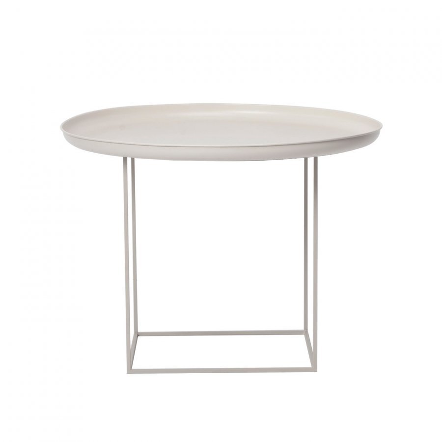 Duke sivupöydässa on tarjotin, joka on löysästi asetettu yhteensopivalle alustalle. Duke on joustava sivupöytä sisäkäyttöön. Voit helposti muuttaa pöydän korkeutta kääntämällä alustaa.