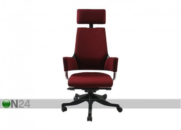 Työtuolin istuin ja selkänoja on verhoiltu tummanpunaisella kankaalla – käsinojat muovia, pehmustettu polyesterikankaalla… Lue lisää »
