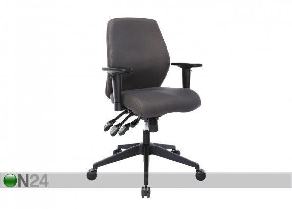 Työtuolin istuin ja selkänoja on verhoiltu harmaalla polyesterikankaalla – monipuolinen mekanismi – istuimen… Lue lisää »