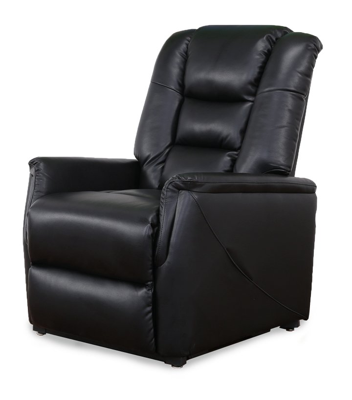 Musta Onni Recliner -nojatuoli on verhoiltu keinonahalla. Sähköinen avaus- ja nostomekanismi. Ostoksille!