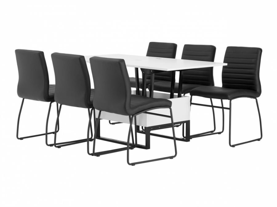 Ruokailuryhmä koostuen musta/valkoisesta taittopöydästä ja kuudesta tuolista. Valitse tuolien väri useasta vaihtoehdosta. Mitat pöytä: P75-151… Lue lisää »