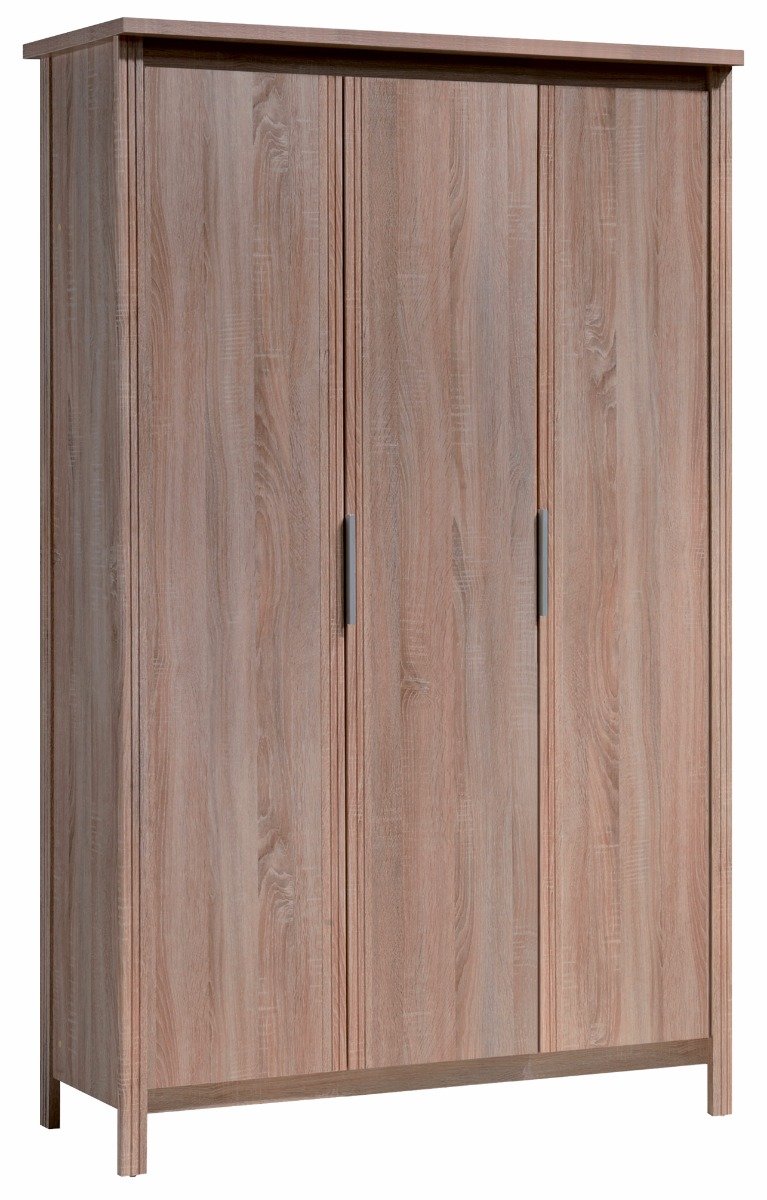 Kolmiovisessa Osaka 505 -vaatekaapissa on kolme hyllyä ja tanko. Väri: vaalea antiikkitammi. Tilaa!