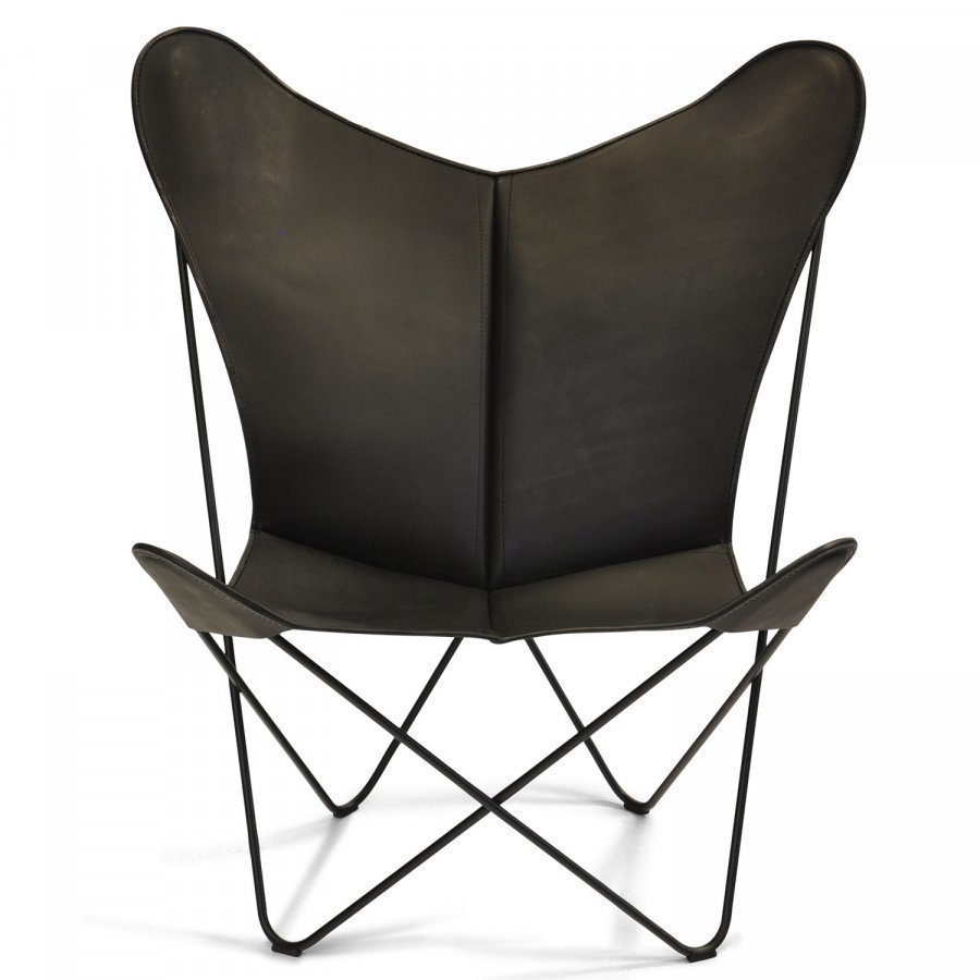 Papillon nojatuolia merkiltä OX Denmarq, kutsutaan myös lepakkotuoliksi erikoisen ulkomuotonsa vuoksi. Tuolin rakenne on yksinkertainen ja tyylikäs. Nojatuolissa on teräsrakenne ja istuin on nahkaa.