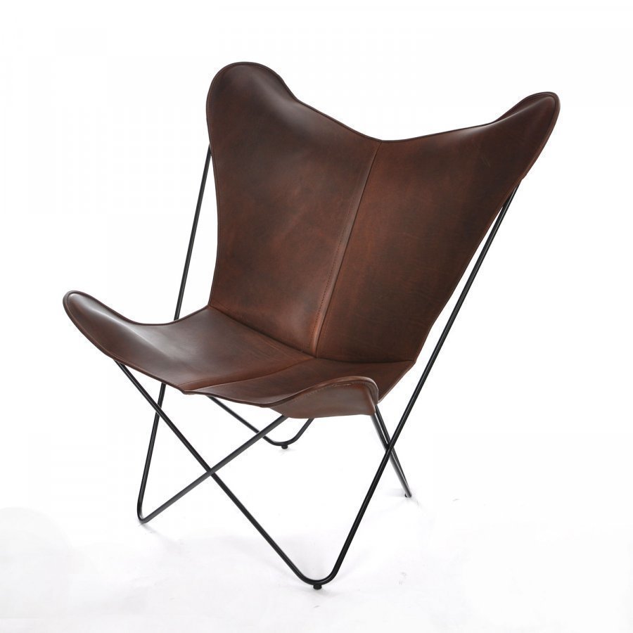 Papillon nojatuolia merkiltä OX Denmarq, kutsutaan myös lepakkotuoliksi erikoisen ulkomuotonsa vuoksi. Tuolin rakenne on yksinkertainen ja tyylikäs. Nojatuolissa on teräsrakenne ja istuin on nahkaa.