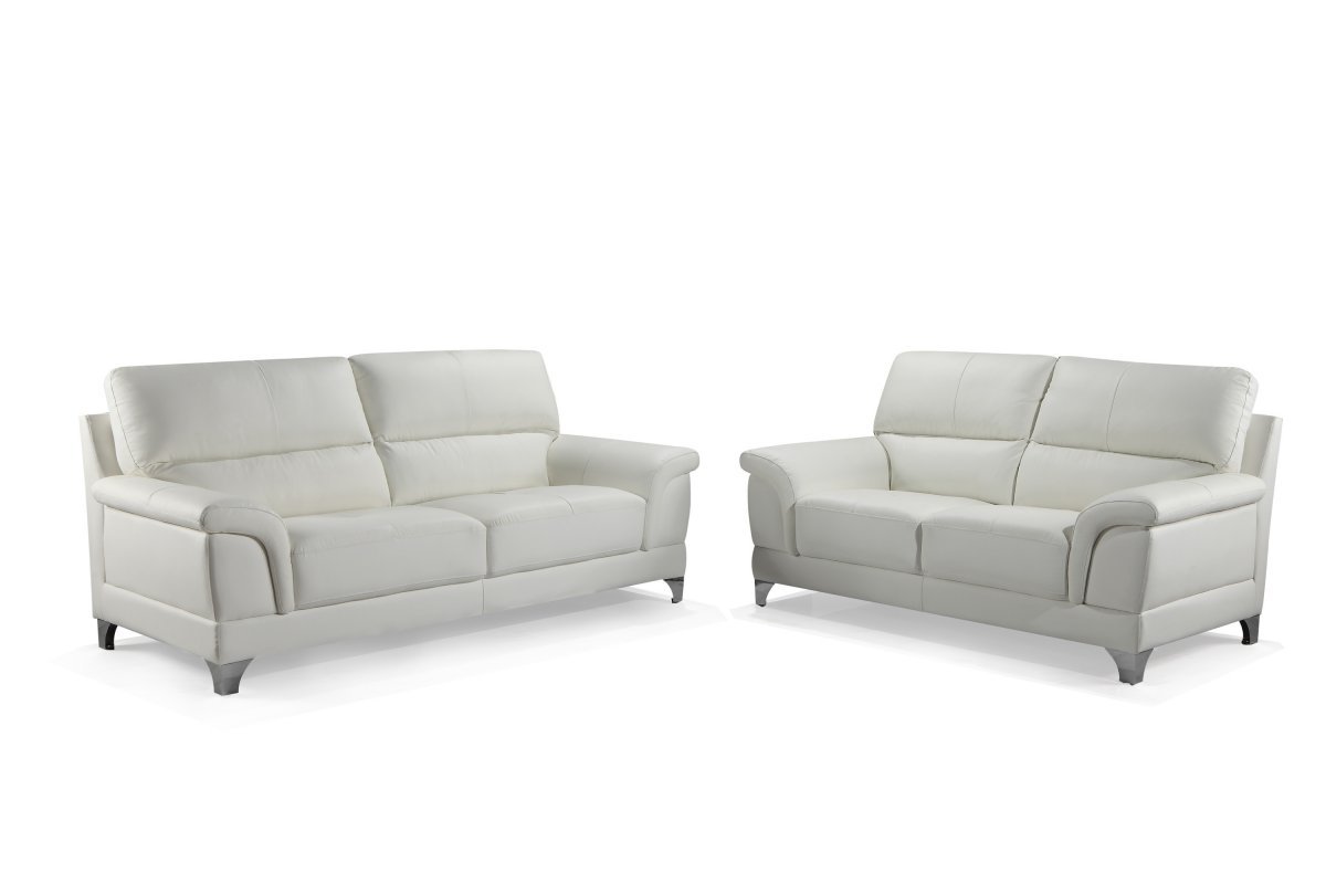 Valkoiset Oxford-sohvat, 2:lle + 3:lle. Kulutuspinnat ovat pehmeää nahkaa. Istuinosissa miellyttävä tuplajousitus. Tilaa!