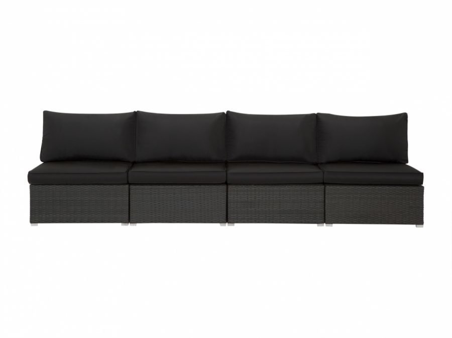 Oleskeluryhmä mustasta keinorottingista mustilla tyynyillä koostuu irrallisista moduuleista…. Lue lisää »