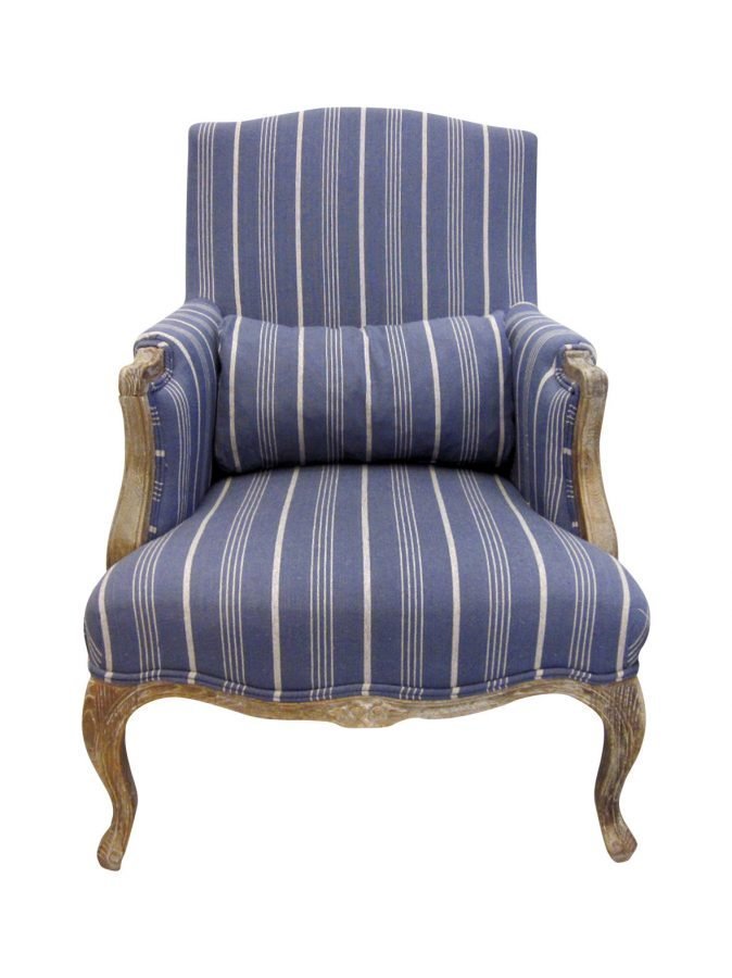 Pentikin raidallinen nojatuoli huokuu vanhan ajan eleganssia. Tuolin runko on tammea ja täyte vaahtomuovia. Kangaspäällisen materiaali on 50 % puuvillaa ja 50 % pellavaa.