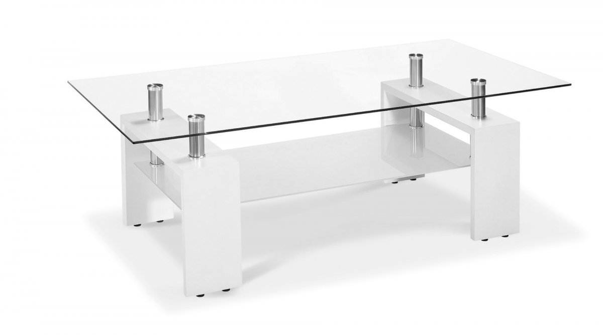 Modernin Podium-sohvapöydän kansi on karkaistua lasia. Kromipidikkeet. Ostoksille!