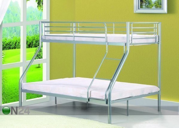 Kerrossängyssä on metallirunko – viimeistelty hopean sävyisellä maalilla – sängynpohja metallia – patjat… Lue lisää »