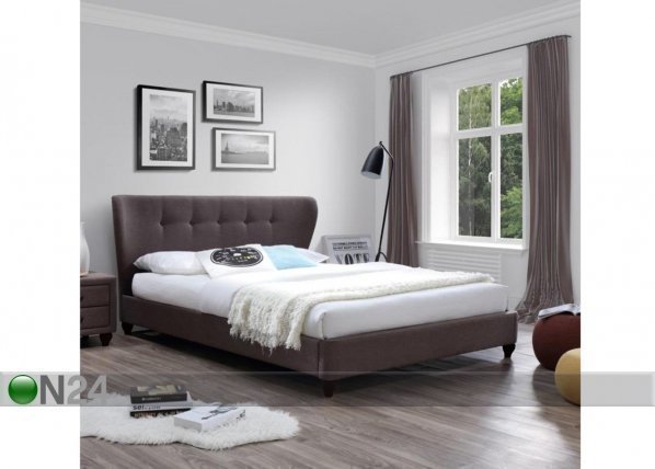 Sängyn runko ja pääty on verhoiltu ruskealla kankaalla – sälepohja sisältyy toimitukseen -… Lue lisää »